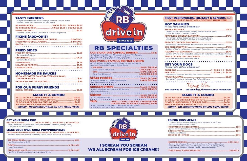 Welcome to R-B Drive-In, Helena's go-to spot for delicious burgers and a laid-back atmosphere! Located at 932 Helena Ave, we offer a variety of dining options including outdoor seating, takeout, and delivery services. Enjoy local specialties while catching one of our live concerts or cheering for your favorite team on screen. Perfect for lunch, dinner, or solo dining, our accessible venue warmly welcomes families, students, and tourists alike. Indulge in hearty meals, happy hour discounts, and delightful desserts in a casual, historic setting. Come savor the experience at R-B Drive-In, where great food and good times collide!